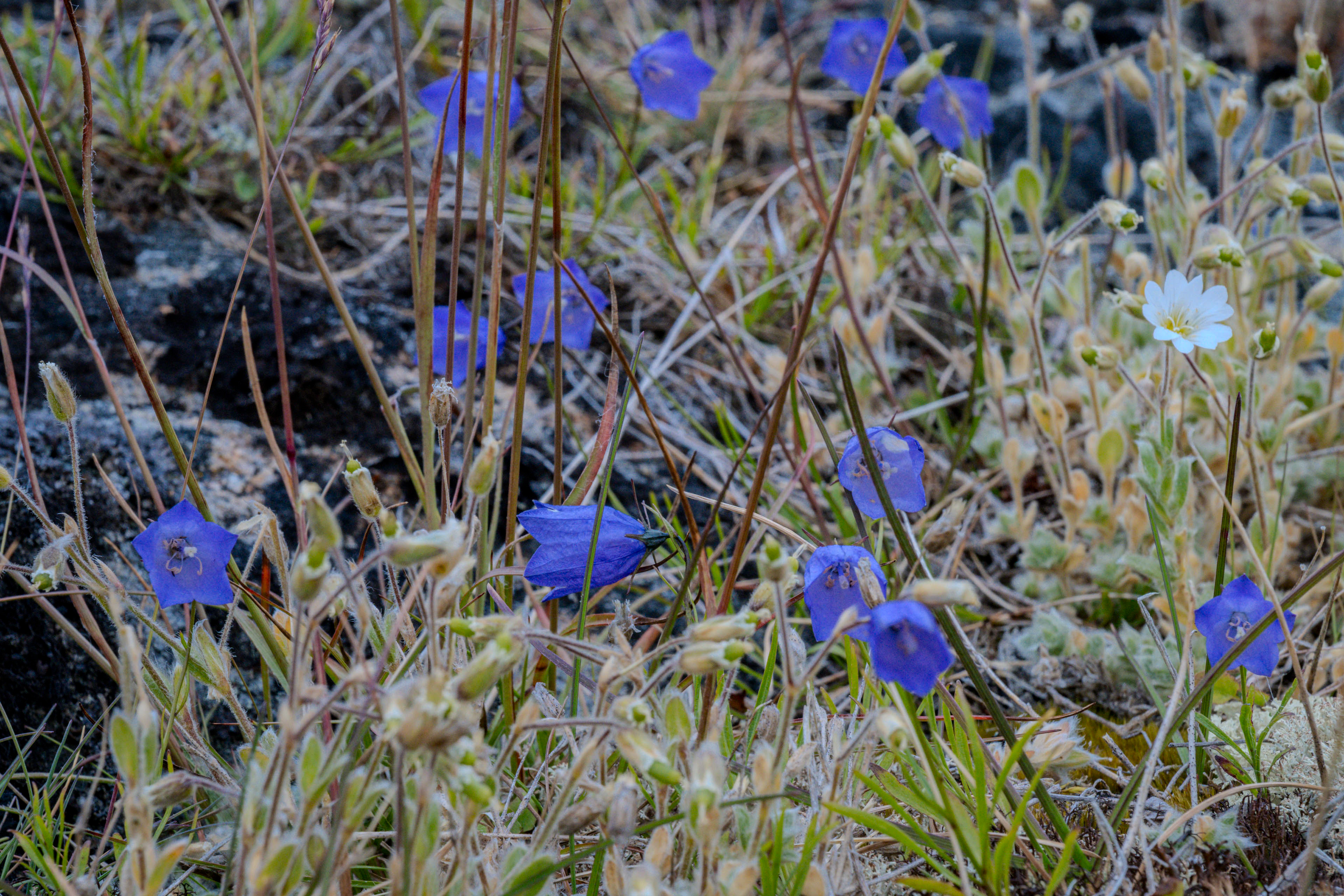 Before this trip, I imagined the Arctic to be endless icy cold hardened land not capable of sustaining any plants. But in fact, during the summer, life is upwelling everywhere. From a distance, tundra appeared to me as dull and lifeless, but in fact, it was full of life. It was spongy to walk upon. My boots sunk in for inches. I felt like I was walking on a mattress or air cushion. Sometimes I stopped and started to examine the plant growth. I could pull apart the top green, leafy layers and find different growth underneath: flowers, mushrooms, lichen, and berries.